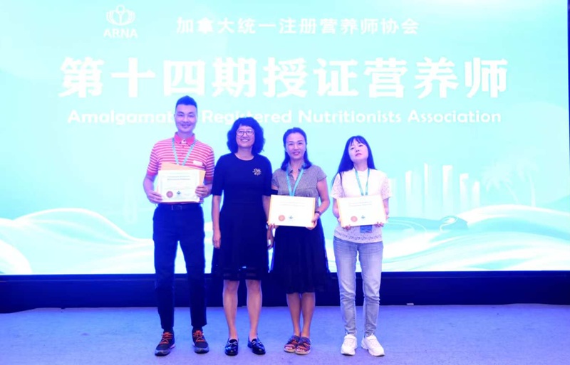 同日上午,加拿大统一注册营养师协会(Amalgamated Registered Nutritionists Association)第14期营养师授证仪式在海口举行。会议吸引了来自全国各地及北美、澳洲的百余名学员和嘉宾,其中38位学员现场接受营养师资格证书。