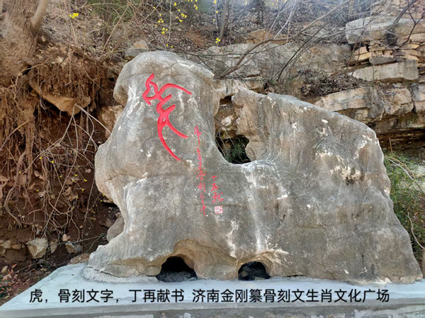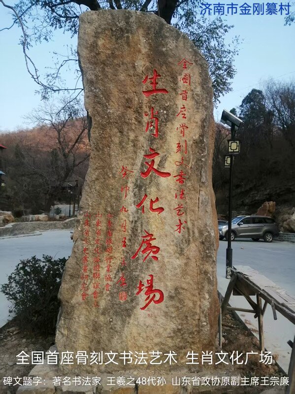 接着,马杰主动请缨,担任起了这个“红娘”的角色。她多次与我沟通交流,当详细介绍金刚纂村的发展历程、现状以及未来的规划,分享马广业书记带领村民艰苦奋斗的感人故事,也阐述了这个文化旅游项目对于金刚纂村的重大意义。他的真诚和对村子发展的热忱,这种艰苦奋斗的精神打动了我,便欣然答应为金刚纂村的生肖文化广场和山中进行骨刻文字书法艺术创作。