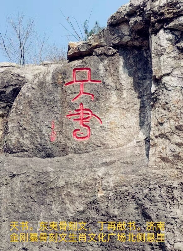 时任村支部书记马广业介绍:2020年秋天,随着金刚纂村在脱贫致富与乡村发展的道路上稳步迈进,这时荣誉村民马杰始终思考着如何进一步挖掘村子的文化潜力,为其打造独特的文化名片。丁老在书法领域的造诣深厚,是国家一级书法家,是著名的文化学者,又是东夷骨刻文字的系统破译者、骨刻文书法艺术创始人。当年村两委研究,想建一座东夷骨刻文书法艺术生肖文化广场,主要内容是十二生肖,其次将进山两侧的山体上刻上丁再献先生的东夷骨刻文字,但苦于不认识丁老。当了解到马杰认识丁老先生,就想请马杰帮忙结识丁老。马杰说:马广业书记也正为金刚纂村寻求一个能够融合文化与旅游的特色项目,他希望能打造一个独特的文化广场,以及在山中留下具有深厚历史底蕴的东夷骨刻文题字,让游客不仅能欣赏到金刚纂村的自然风光,还能感受到其独特的文化魅力。