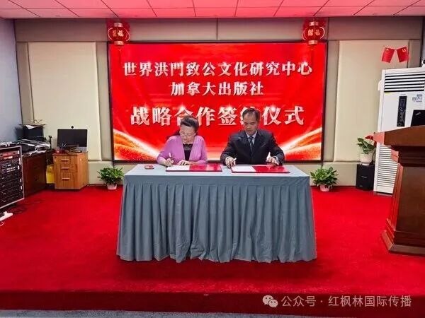 在签约仪式上,世界洪门致公文化研究中心执行主席、加拿大洪门致公总堂主席王辉,与加拿大出版社社长谷剑云分别代表双方签署协议。王辉表示,此次合作不仅是学术研究与出版领域的深度结合,更是将洪门文化带向全球的重要举措。谷剑云则指出,加拿大出版社将以高品质出版标准,把洪门文化研究成果呈现给世界,让更多海外读者理解并欣赏中华文化的独特魅力。