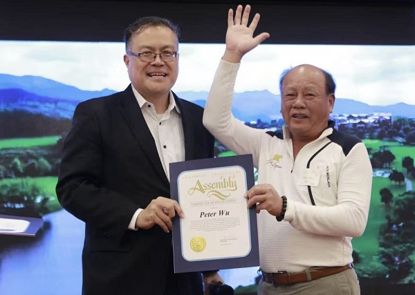 圣盖博市市议员吴程远在致辞中肯定全球华人高尔夫协会长期在促进洛杉矶亚裔社区青少年高尔夫球运动及推动华人高尔夫球协会文化交流所作出的贡献。